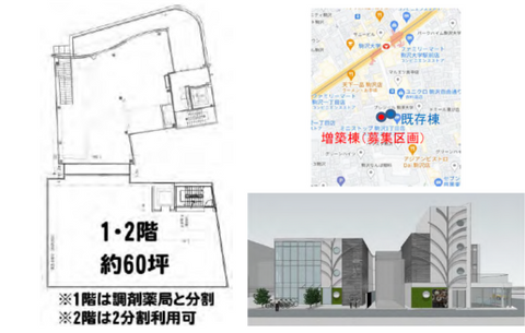 2F:約198.34㎡(約60坪)[2分割可能]/1F:約198.34㎡(約60坪)[調剤薬局と分割予定]