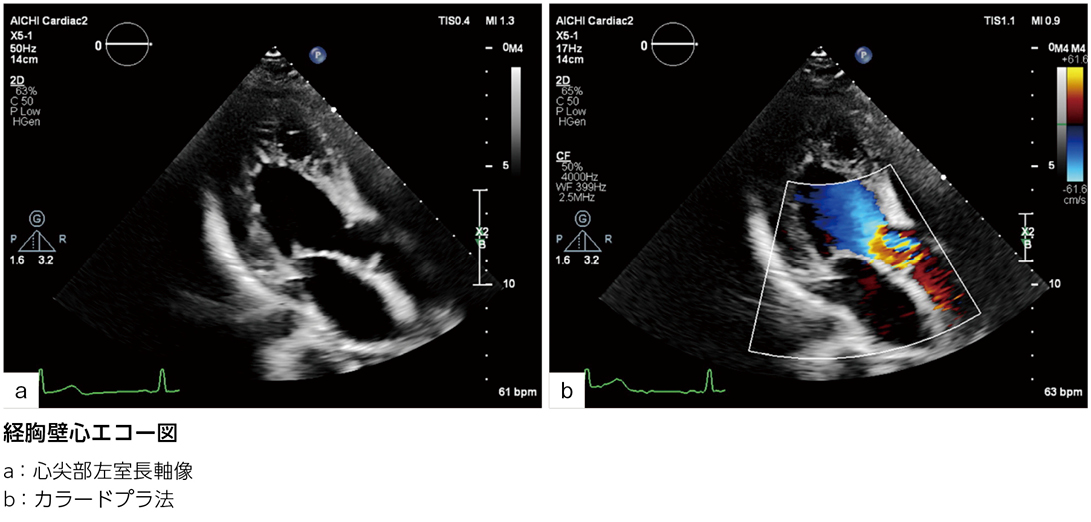 その後当院にて術後フォローアップとなり,経胸壁心エコー図検査で左室流出路最大血流速度4.0m/秒(ドプラ法による圧較差64mmHg)と上昇を認めた。無症状。