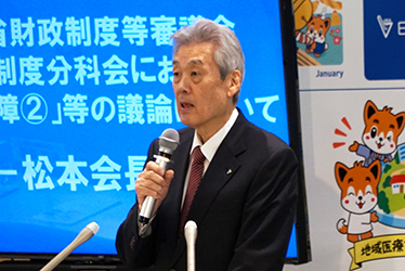 松本会長は、財務省が示した「大きなリスクは共助中心、小さなリスクは自助中心」という民間保険的な考え方について「大変残念」と問題視。医療は現金給付ではなく現物給付が基本であり、公的皆保険制度のもとでは「必要かつ適切な医療が保険診療によって確保されるべき」という立場を改めて表明した。