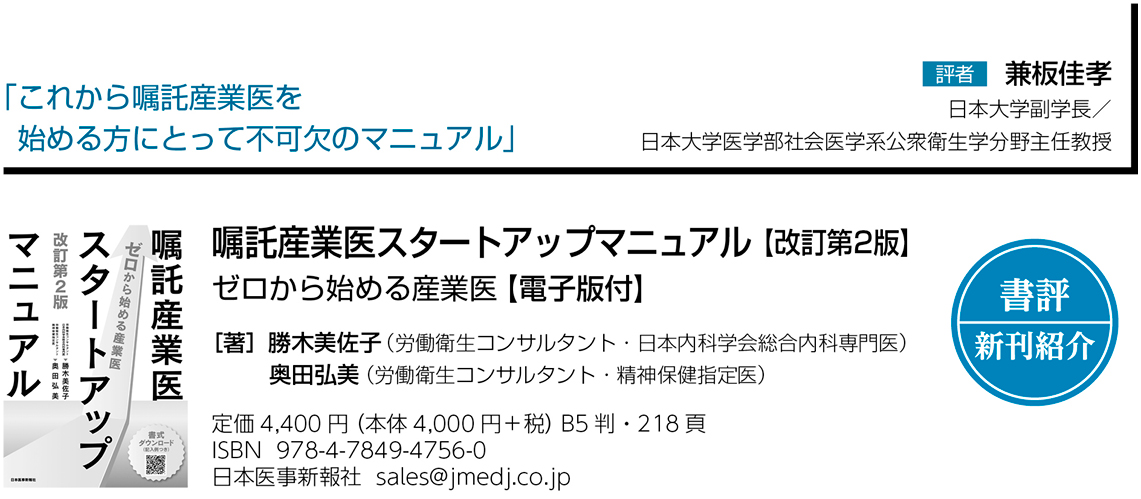 労働衛生コンサルタントである勝木美佐子先生と奥田弘美先生が共著で出版された『嘱託産業医スタートアップマニュアル』が,7年ぶりに改訂されました。