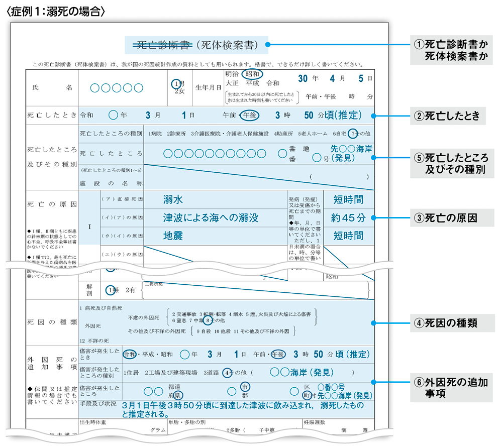 症例1:男性,昭和30年4月5日生。3月2日午後3時頃,海岸に打ち上げられているところを発見。検視・検案で溺死と判断された。症例2:女性,平成10年11月2日生。3月7日午前10時頃,自宅から発見。検視・検案で圧死と判断された。症例3:男性,昭和5年6月7日生。3月10日午後3時頃,自宅火災現場から発見。検視・検案で焼死と判断された。