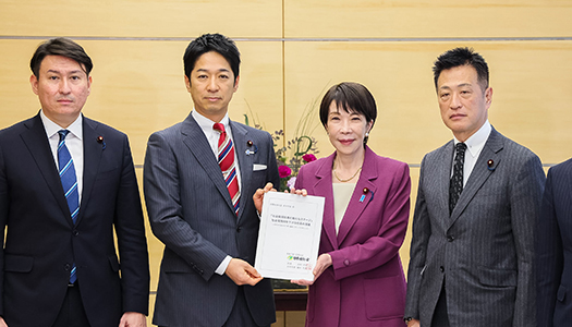 高市首相(中央右)に申し入れを行う藤田共同代表ら(首相官邸ホームページより)
