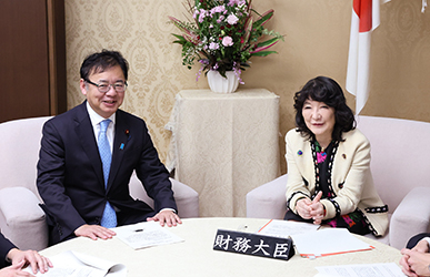 12月24日、2026年度診療報酬改定の改定率で合意した上野厚労相(左)と片山財務相(代表撮影)