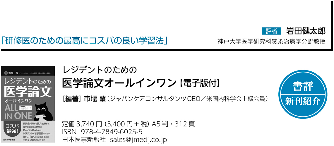 本書は,レジデントのための医学論文の読み方と書き方,さらにはAIの活用方法を指南する。文字どおり「オールインワン」な本なのだ。私が研修医のときには,論文の読み方を教えてくれる本はなかった。書き方を教えてくれるツールもなかった。もちろん,AIもなかった。今のレジデントは羨ましい。